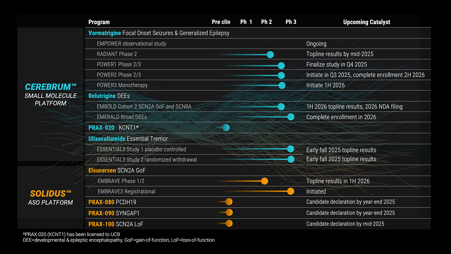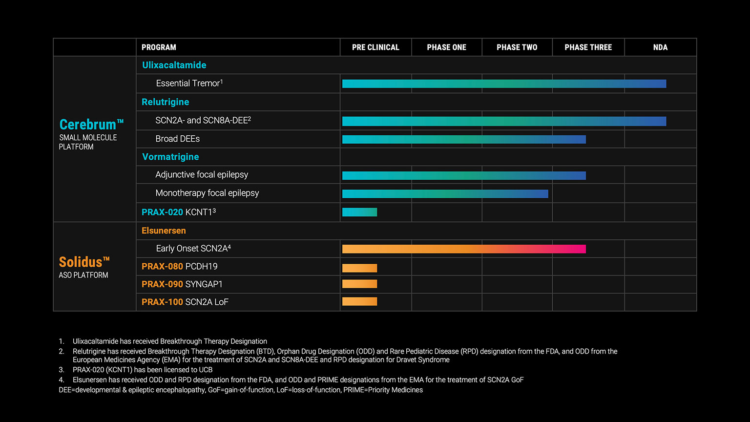 Praxis Precision Medicines is a clinical-stage biopharmaceutical company translating insights from genetic epilepsies into the development of therapies for central nervous system, or CNS, disorders characterized by neuronal excitation-inhibition imbalance.